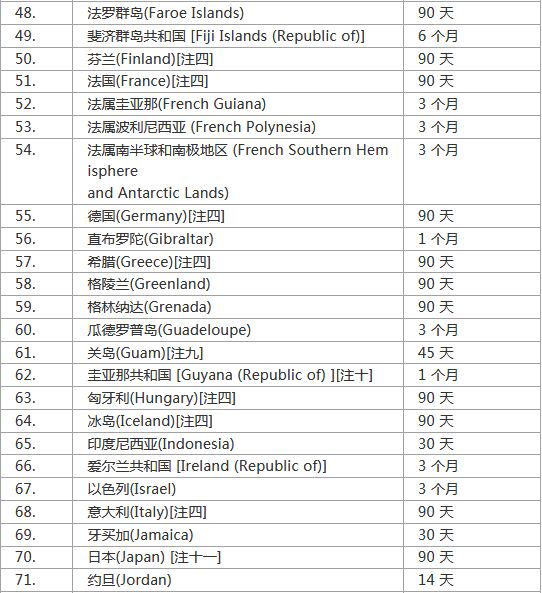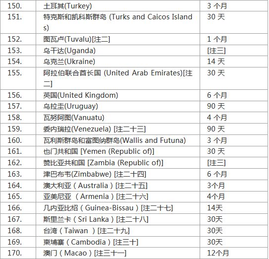 注二十八:斯里兰卡30天,须预先于网上登记电子旅行授权,手续费为35至50美元。