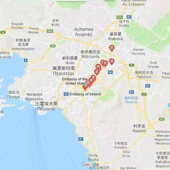 雅典使馆区位于市中心东北部,从卫城出发沿东北部主街道一直延伸到哈兰德里区。各国使馆均势分布在主街道两旁。该区域绿化覆盖率高,整体氛围很好,是雅典市中心三大购房好地段中的首选。房价便宜,配套设施齐全,治安很好,是投资升值和居住的出色选择。